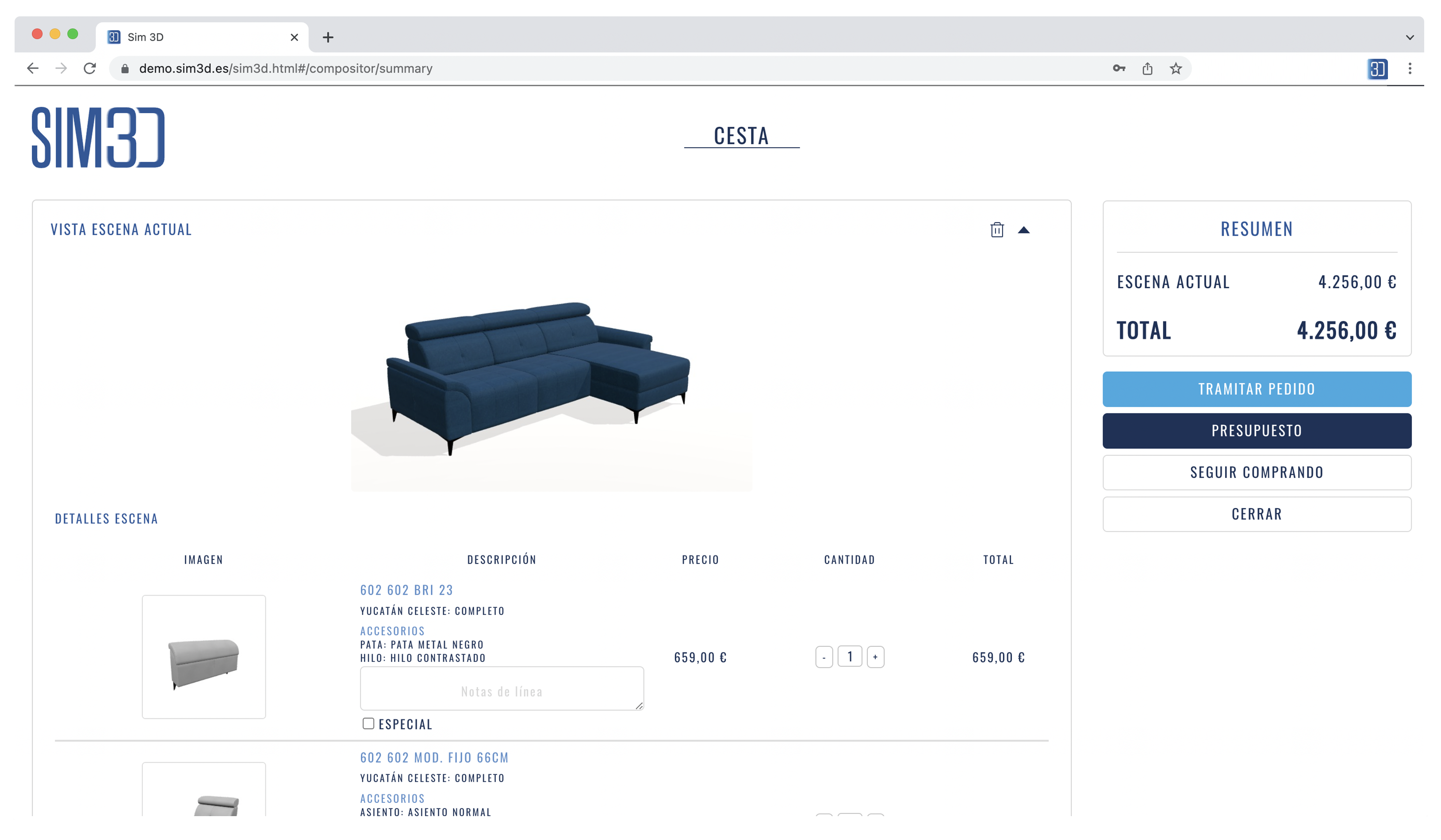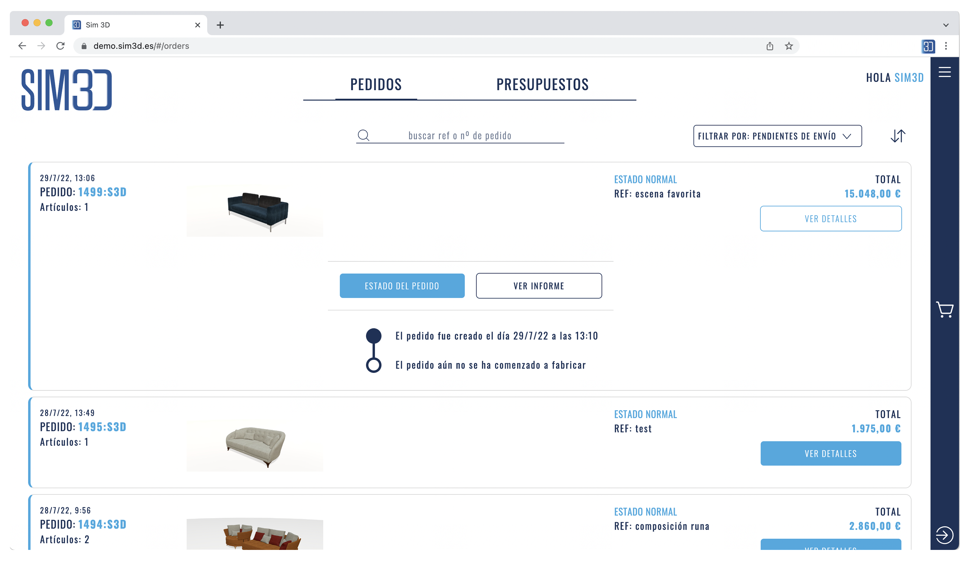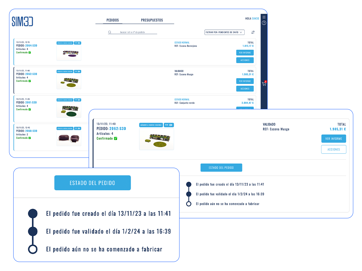 Acceso a pedidos 2D desde el propio sim3D para realizar pedidos de manera rápida sin necesidad de tener representación 3D.